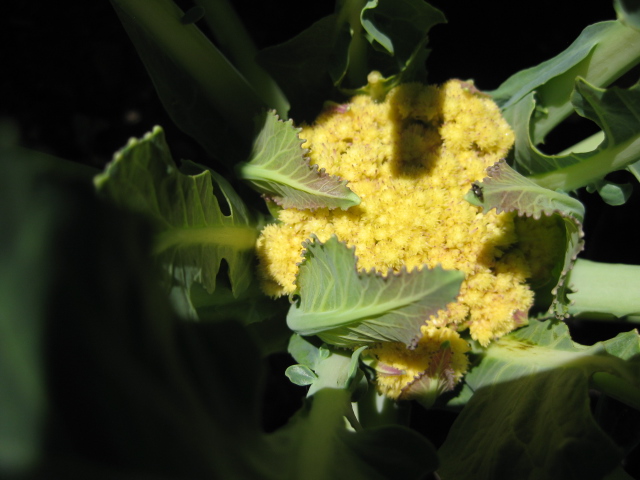 DW planted cheddar cauliflower. It's starting to form now. Will be fun to harvest!